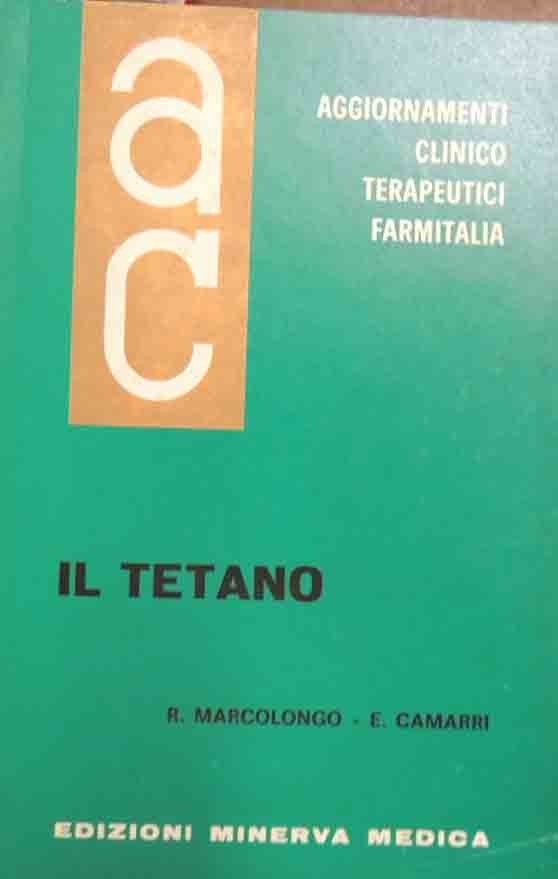 R. Marcolongo, E. Camarri, Il tetano, numero monografico di Aggiornamenti Clinicoterapeutici. Collana monografica mensile, vol. X, n. 6, giugno 1969, Edizioni Minerva Medica, s.l. (ma stampato a Saluzzo, presso la Tip. Ed. Minerva Medica), pp. IX, 100, ill. b.n., cm 22, br. ed. Piccolo timbro di appartenenza all’occhiello e al frontespizio. Minime fioriture, lieve brunitura della carta, per il resto ben conservato.