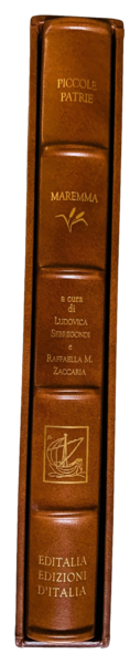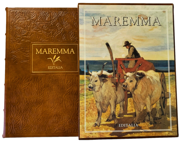 In folio; 177, (3) pp. Esemplare in perfetto stato di conservazione, come nuovo. Cofanetto editoriale illustrato in mezza-pelle, magnifica legatura editoriale in piena pelle con titolo e editore, impressi in oro al piatto anteriore ed al dorso ai tasselli. Al piatto anteriore ricchi fregi botanici a secco. Dorso a 4 nervi. Monumentale opera uscita nella collana Editalia "Collana Piccole Patrie" in tiratura limitata di 999 esemplari (il nostro è l'esemplare numero 634). Esemplare stampato su speciale carta marcata appositamente realizzata dalla cartiere Milani di Fabriano. Le dorature della custodia, e dalla legatura sono realizzate in oro zecchino da "Arte del Libro" di Todi. L'opera raccoglie, oltre ad un importante testo critico dedicato alla storia maremmana e dei suoi borghi, 73 tavole in bianco e nero e 45 tavole a colori. Fra i territori trattati: Castiglione, Roccastrada, Massa, Carrara, Gavorrano, Scarlino, Barbanella, Albarese, Orbetello, Argentario, Grosseto, Rosselle, Siena, ecc. Prima edizione in perfette condizioni di conservazione, come nuovi