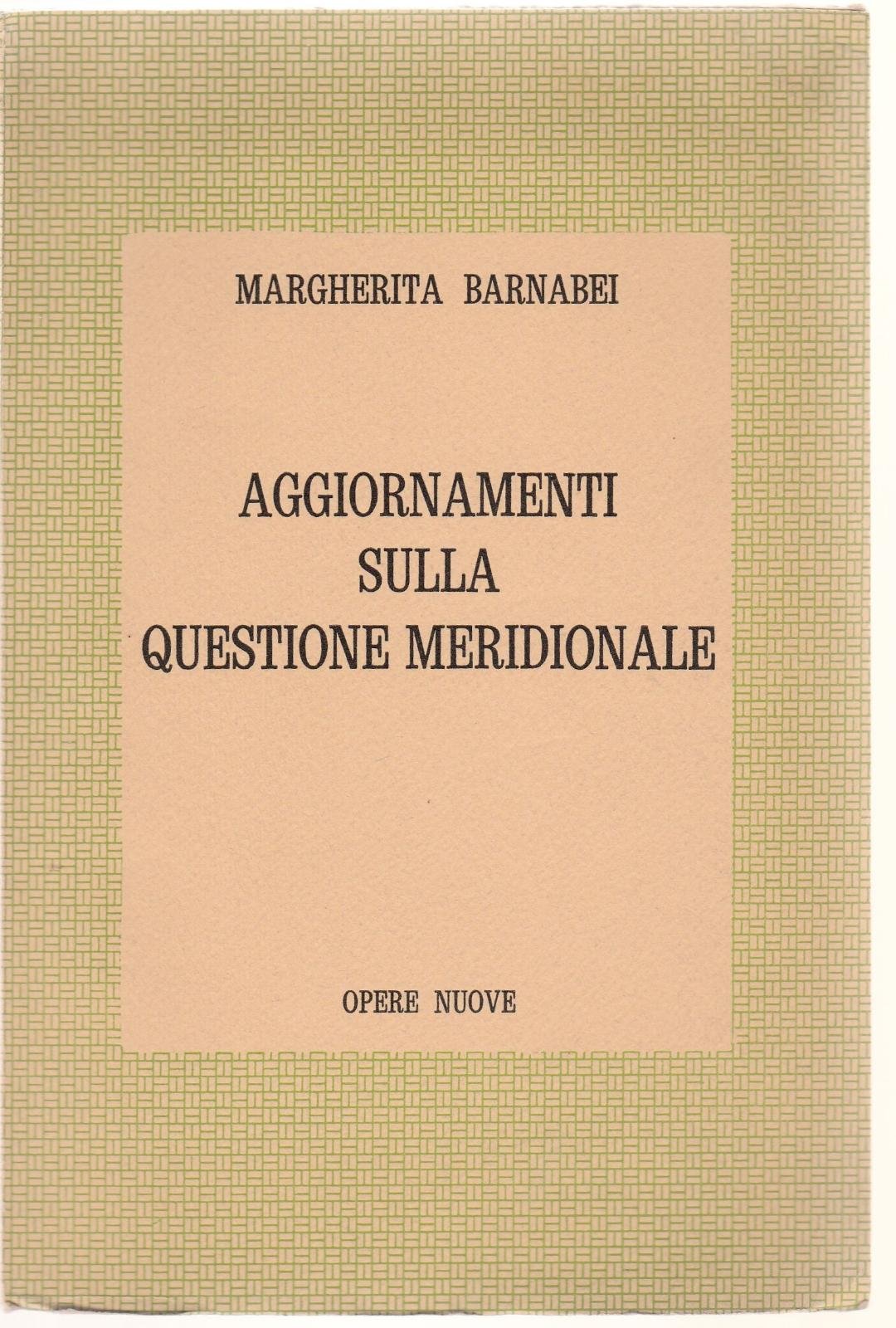 MARGHERITA BARNABEI AGGIORNAMENTI SULLA QUESTIONE MERIDIONALE OPERE NUOVE 1962 L4325 COPERTINA EDITORIALE MORBIDA CON UNA PICCOLISSIMA PIEGA ALL'ANGOLO SUPERIORE, INTERNO IN OTTIMO STATO TAGLI SUPERIORI E INFERIORI IRREGOLARI, N. PAG. 139 CM. 19,5 X 13