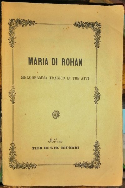 Maria di Rohan melodramma tragico in tre atti di Salvadore Cammarano musica del maestro Gaetano Donizetti