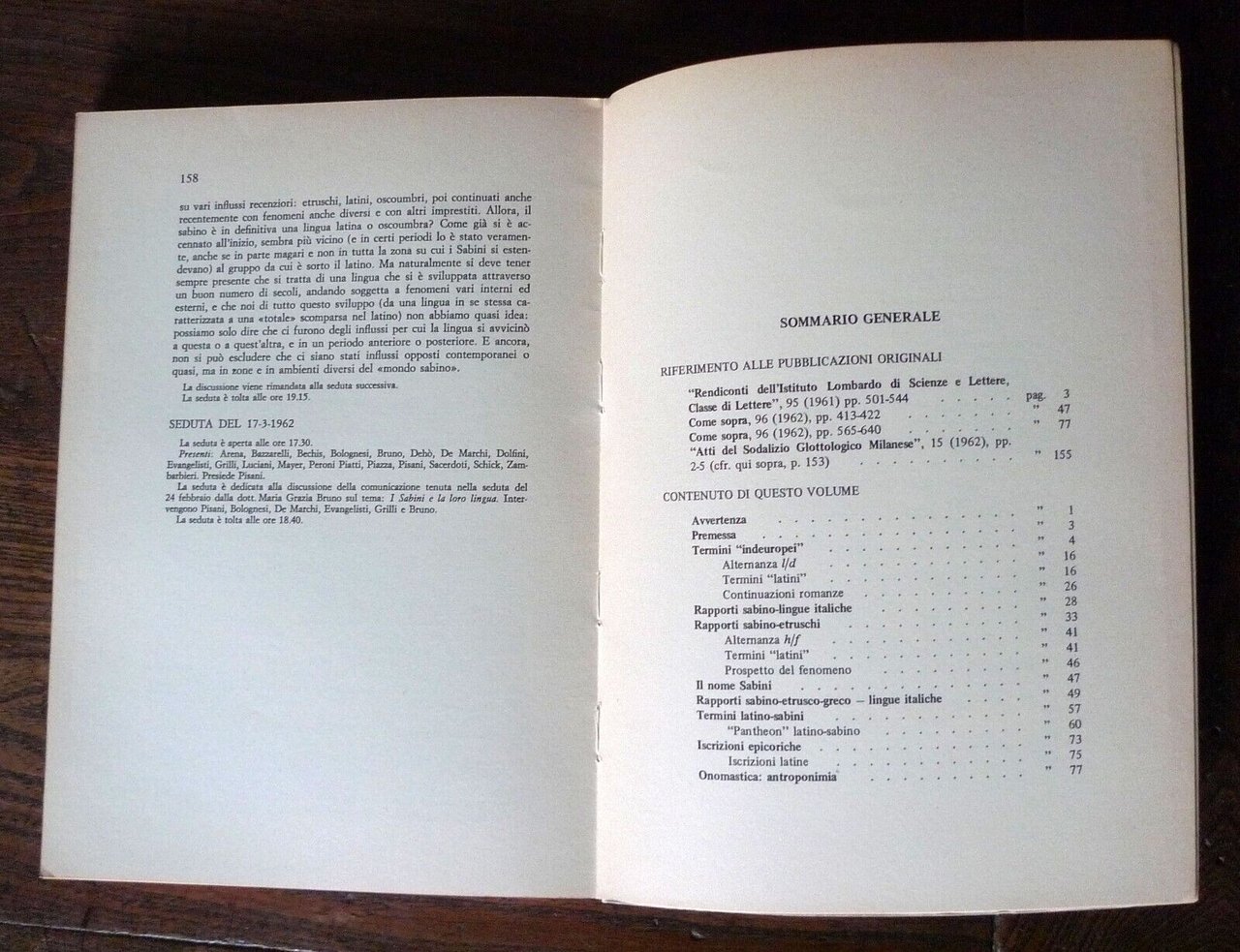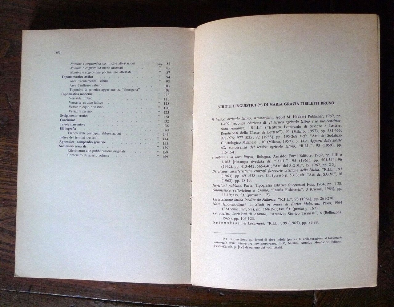 Maria Grazia Bruno,I SABINI E LA LORO LINGUA.Ristampa riveduta.Forni Editore, Bologna 1969,brossura, 24,5x17 cm., pp.163,peso: g.350