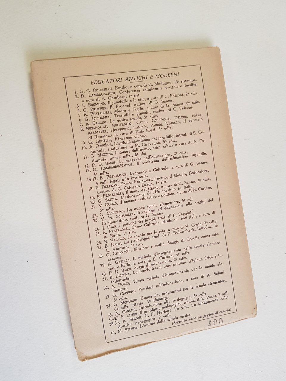 Collana: Educatori Antichi e Moderni, CXX.<BR>In 16° grande; pp. 149; brossura editoriale; cucito.<BR>CONDIZIONI MOLTO BUONE. Intonso.