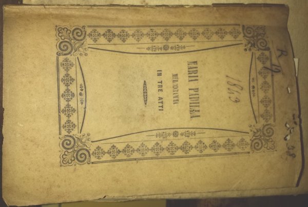 In-16 (18 cm) 32. Marca editoriale al frontespizio. Titolo al piatto in cornice incisa e marca al contropiatto. Brossura editoriale.Libreto d'opera.Rossi Gaetano (1774-1855); Donizetti Gaetano. Autori del testo e della musica, personaggi interpreti ap. 4. Altro autore del testo: Gaetano Donizetti