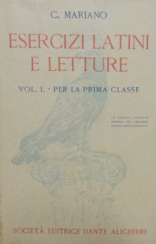 Cosimo Mariano, Esercizi latini e letture. Volume I per la prima classe, Società Anonima Editrice Dante Alighieri (Albrighi, Segati e C.), Genova 1942, seconda ed. riveduta, pp. VII, 328, cm 21, br. ed. Minime tracce d’uso alla brossura, lievi fioriture, per il resto molto ben conservato. Intonso.
