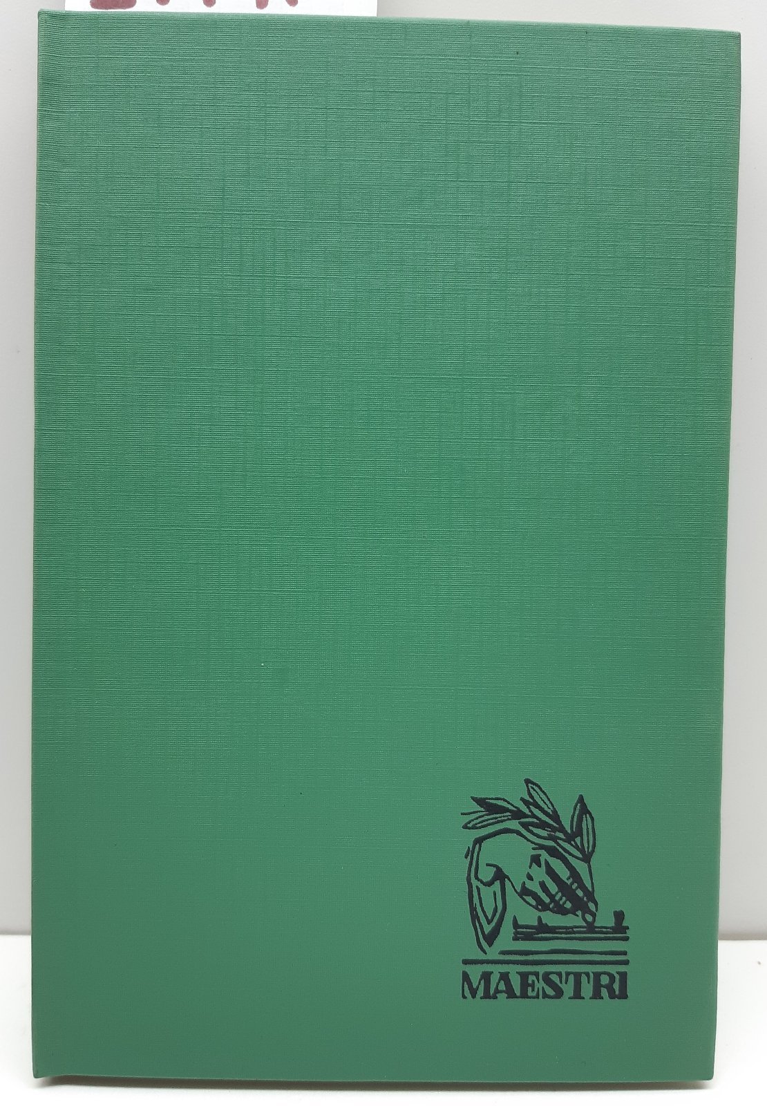 Collana MEP Maestri numero 79 Legatura rigida editoriale in tela verde con fregio impresso al piatto anteriore, titoli in nero al dorso, legatura in buone condizioni lievi segni del tempo e alcuni lievissimi aloni, tagli bruniti con fioriture impolverati quelli superiori, interno in buono stato brunitura al margine esterno delle pagine, numero pagine 131 + indice dimensioni cm 17 x 11,5