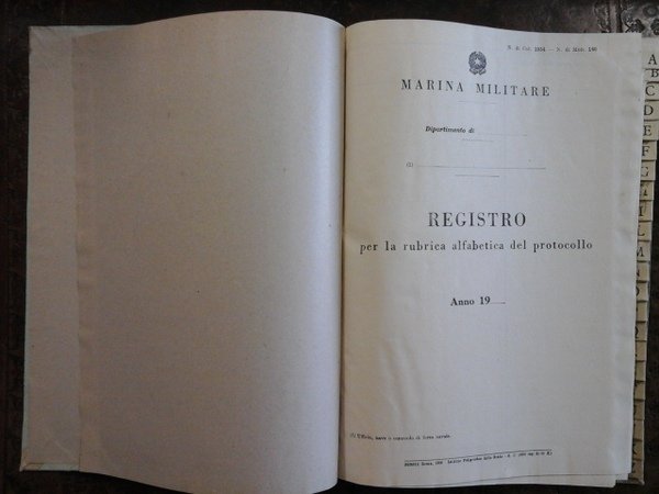 Marina Militare. Registro per la rubrica alfabetica del protocollo. N. di cat. 1054 - N. di Mod. 140