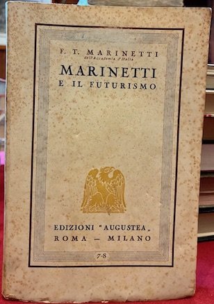 16mo (cm. 19,3), 171(1) pp., 1 c.nn. Con una tavola parolibera a doppia pagina n.t. Brossura editoriale (fioriture sulle copertine). Ottimo esemplare. Edizione originale. Numero 7-8 della collana ‘I prefascisti’.