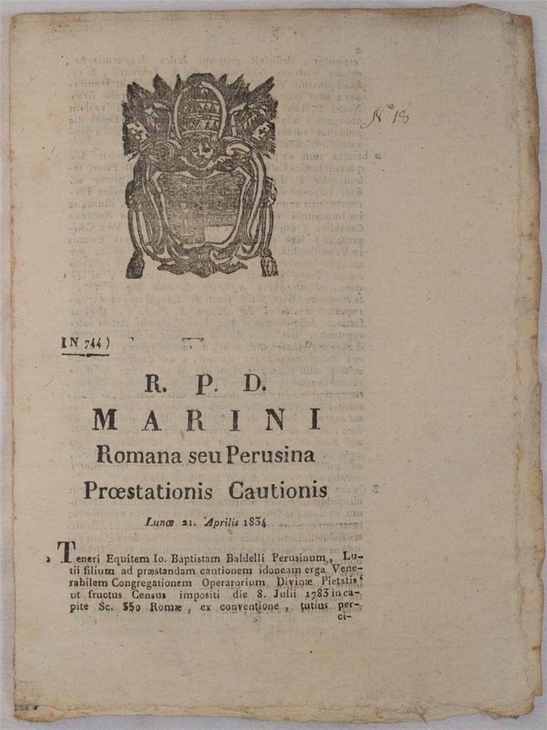 MARINI ROMANA SEU PERUSINA PROESTATIONIS CAUTIONIS LUNOE 21 APRILIS 1834