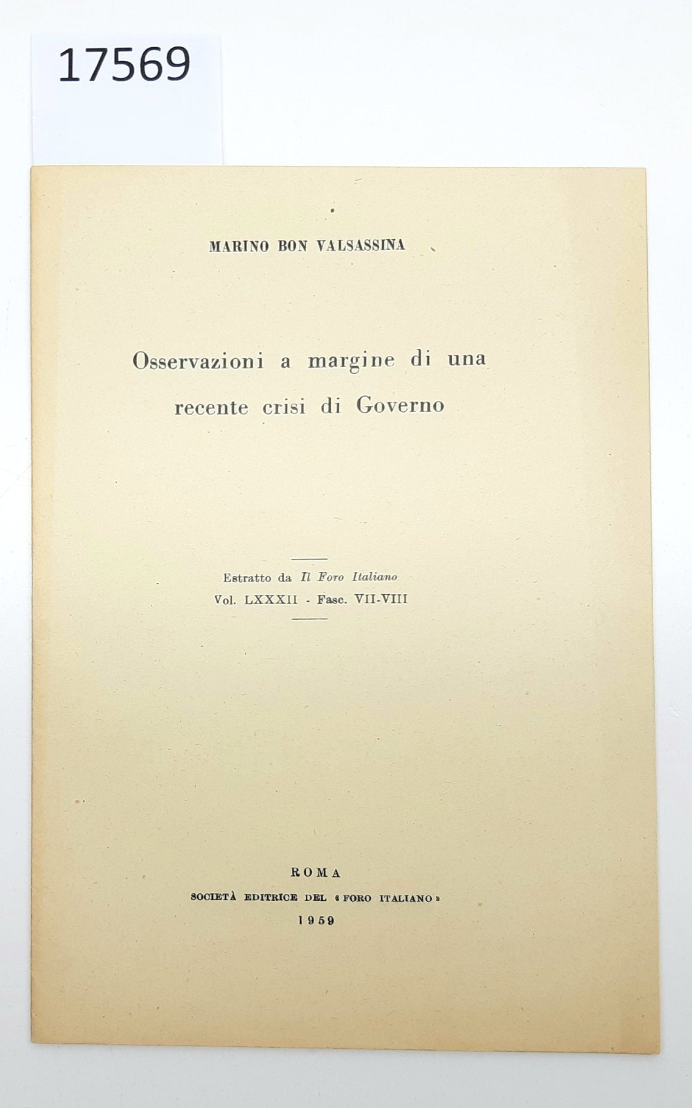 Marino Bon Valsassina Osservazioni a margine di una recente crisi di governo estratto 1959