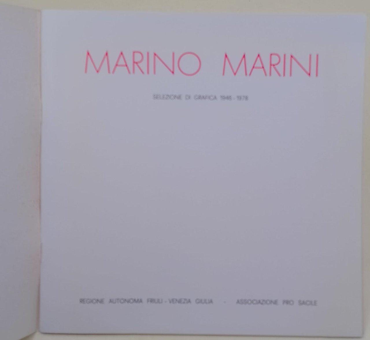 In 8' carre, a punta di spillo, pp. nn, catalogo, Sacile, Palazzo Flangini Biglia-27 giugno-10 agosto 1978; ingiallimenti e segni del tempo alla cop.,interno in buono stato. ***Due to bureaucratic reasons, books dated over 70 years old cannot be immediately exported, please contact us before placing the order.***