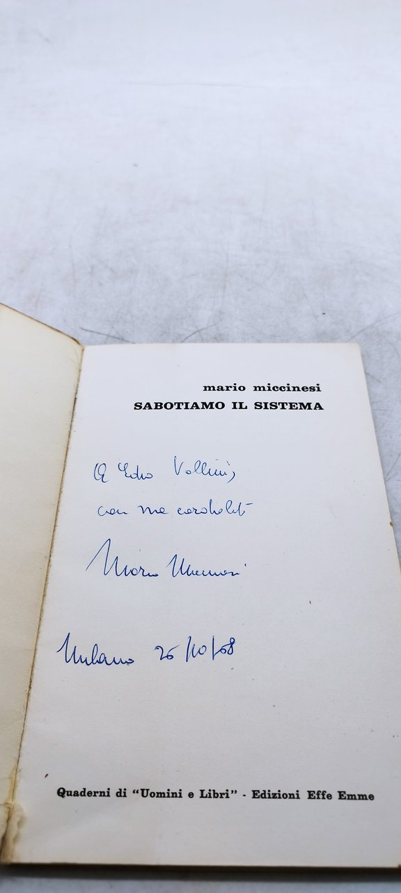 mario miccinesi sabotiamo il sistema quaderni di uomini e libri . , 1968 italiano, pp.61 ^^^brossura