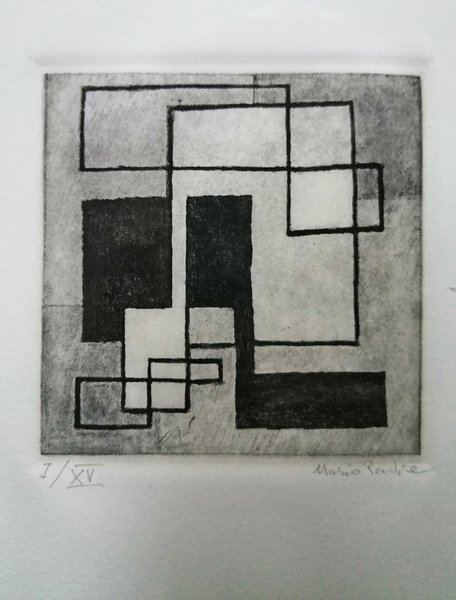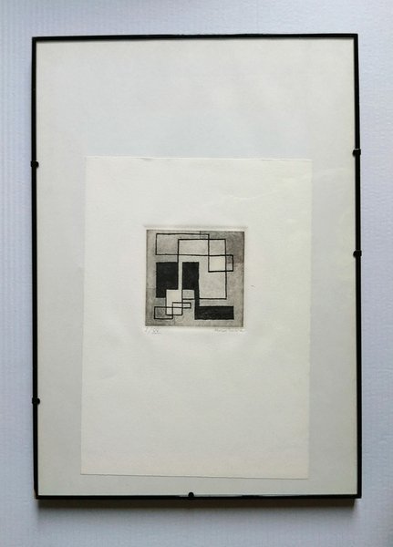 Incisione originale in B/N formato 11X11 su foglio formato 35X25 Cornice formato 51X36. Firmato e numerato dall Artista. Tiratura 1/15 Ottimo stato