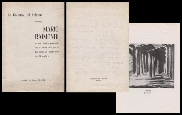 *Mario Raimondi. Galleria Del Milione Milano, 29 Marzo 1940.