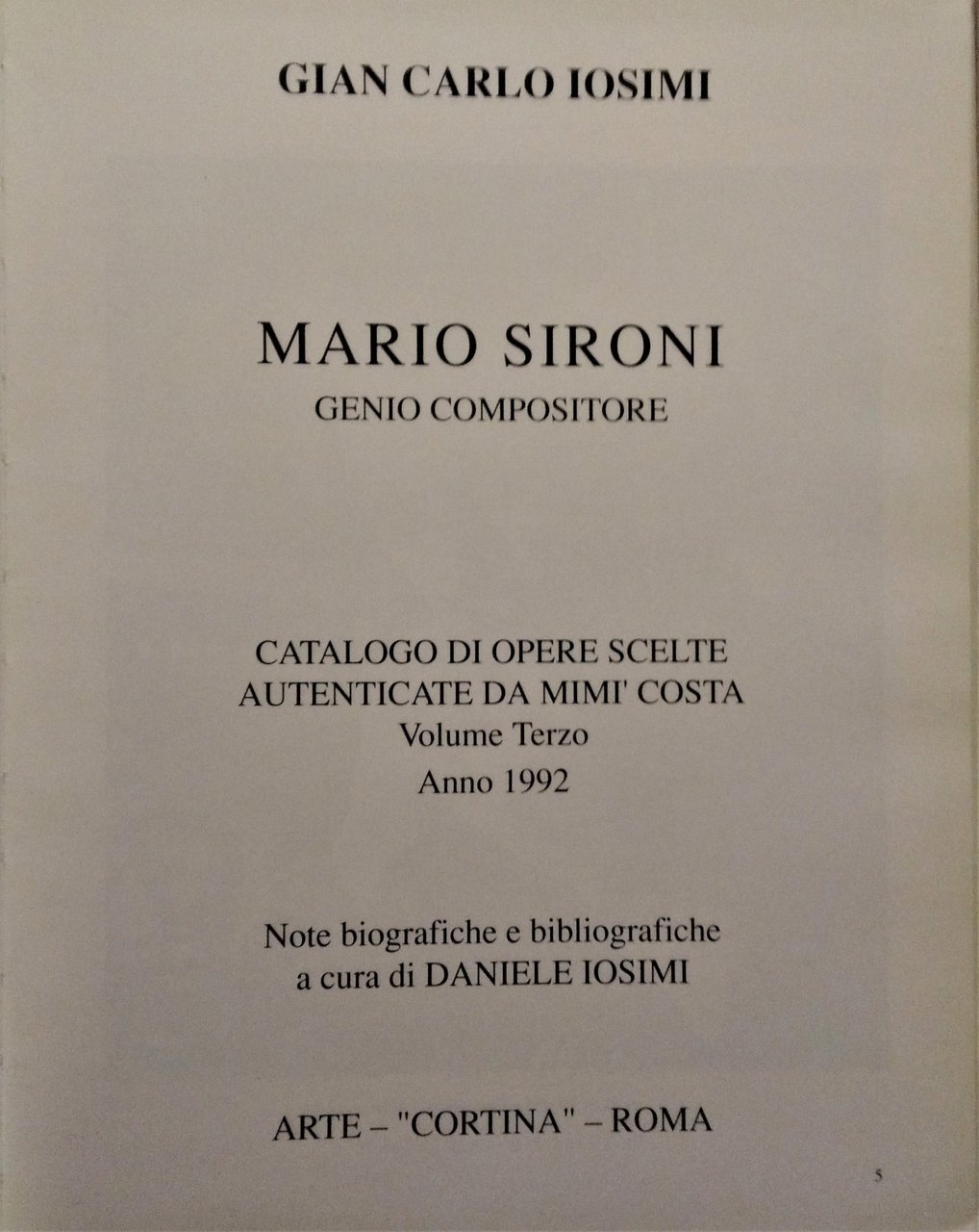Mario Sironi genio compositore. Catalogo di opere scelte autenticate da Mimi' Costa. Volume terzo....Note biografiche e bibliografiche a cura di Daniele Iosimi.