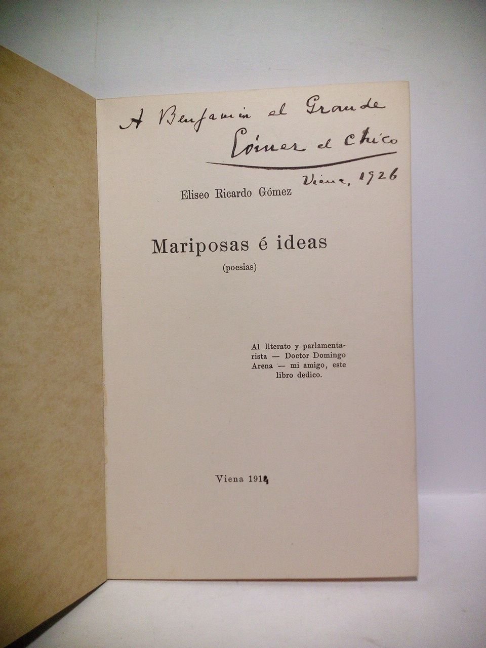 [PRIMERA EDICION].- Viena: [s.n.] (Imp. por Hesse & Becker, Leipzig), 1912 [en la portada está corregido a mano poniendo 1914].- 31 p.; 8º (18,8 x 12,7 cm); Cartulina Ed.* En el margen superior de la portada lleva manuscrita una dedicatoria autógrafa del autor. Impecable Estado. LITERATURA, ESTUDIOS LITERARIOS, FILOSOFÍA Y PENSAMIENTO IBEROAMERICANO EN GENERAL