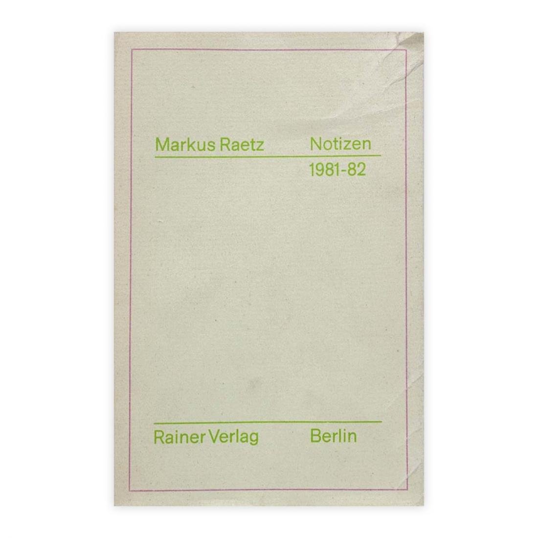 Autore: Markus Raetz Titolo: Markus Raetz Sottotitolo: notizen 1981-82 faksimiledruck von sechs Notizbuchern mit einem Selbstbildnis des autors gezeichnet von rainer Pretzell.Herausgeber: Rainer Verlag Berlin un Berliner Kunstlerprogramm des Deutschen Akademischen Austauschdienstes - note 1981-82 stampa in facsimile di sei quaderni con un autoritratto dell'autore disegnato da Rainer Pretzell. - 1200 Exemplare Editore: Rainer Verlag Berlin - programma per artisti di Berlino del German Academic Exchange Service 1982 Dimensioni: 10 x 15,5 cm c.a. Copertina: Brossura con alette Condizioni: Buone come da foto - Copertina leggermente rovinata