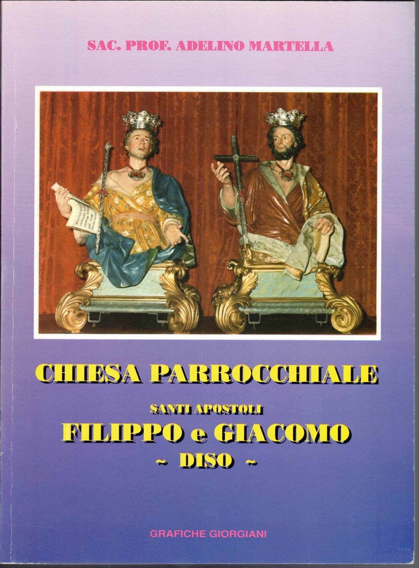 Adelino Martella, Chiesa parrocchiale Santi Apostoli Filippo e Giacomo – Diso, Grafiche Giorgiani, Castiglione d’Otranto 1993, pp. 243, 8 c. di tavv. f.t. ill. col., cm 21, br. ed. Leggere tracce d’uso alla brossura, per il resto perfetto.