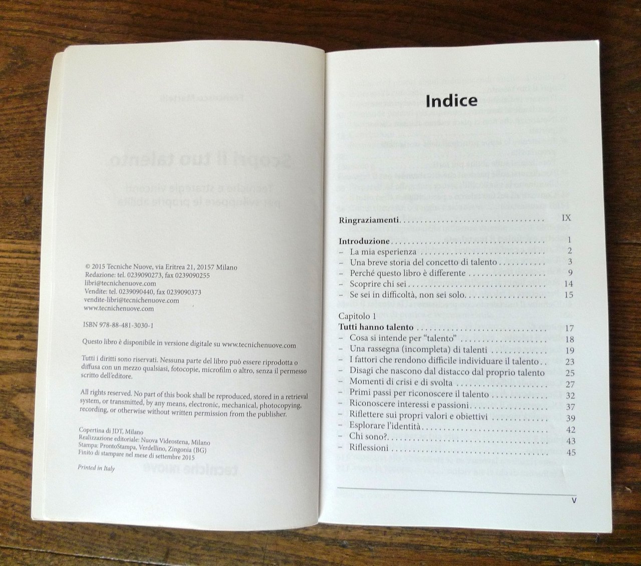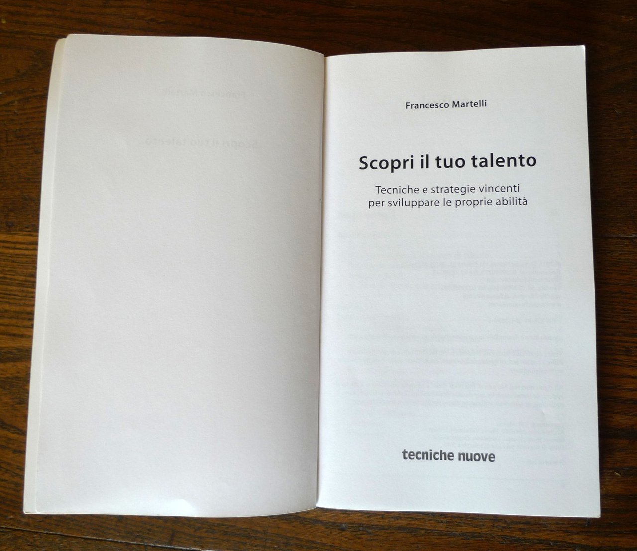 Francesco Martelli,SCOPRI IL TUO TALENTO.Tecniche e strategie vincentiper sviluppare le proprie abilità.Tecniche Nuove, Milano 2015,brossura, 21x13 cm., pp.VIII-233,ISBN: 978-88-481-3030-1,peso: g.350cod.9521CONDIZIONI DEL LIBRO: ottime,minime imperfezioni alla copertina