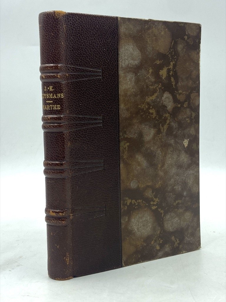 Legatura coeva in mezza pelle con fregi a secco e falsi nervi sul dorso, cm 19x12, pp VIII 182, illustrazioni in nero nel testo. Conservati i piatti della brossura. Edizione primo-novecentesca, illustrata dal pittore Bernard E. H. Naudin (1876-1946), del primo romanzo di Huysmans, racconto di stampo naturalista inizialmente apparso nel 1876. Parzialmente autobiografico, il romanzo narra la relazione tra un giornalista e un’aspirante attrice che diviene prostituta, e della sua rovina; il tema scabroso portò Huysmans a far pubblicare il libro a Bruxelles, per evitare la censura.