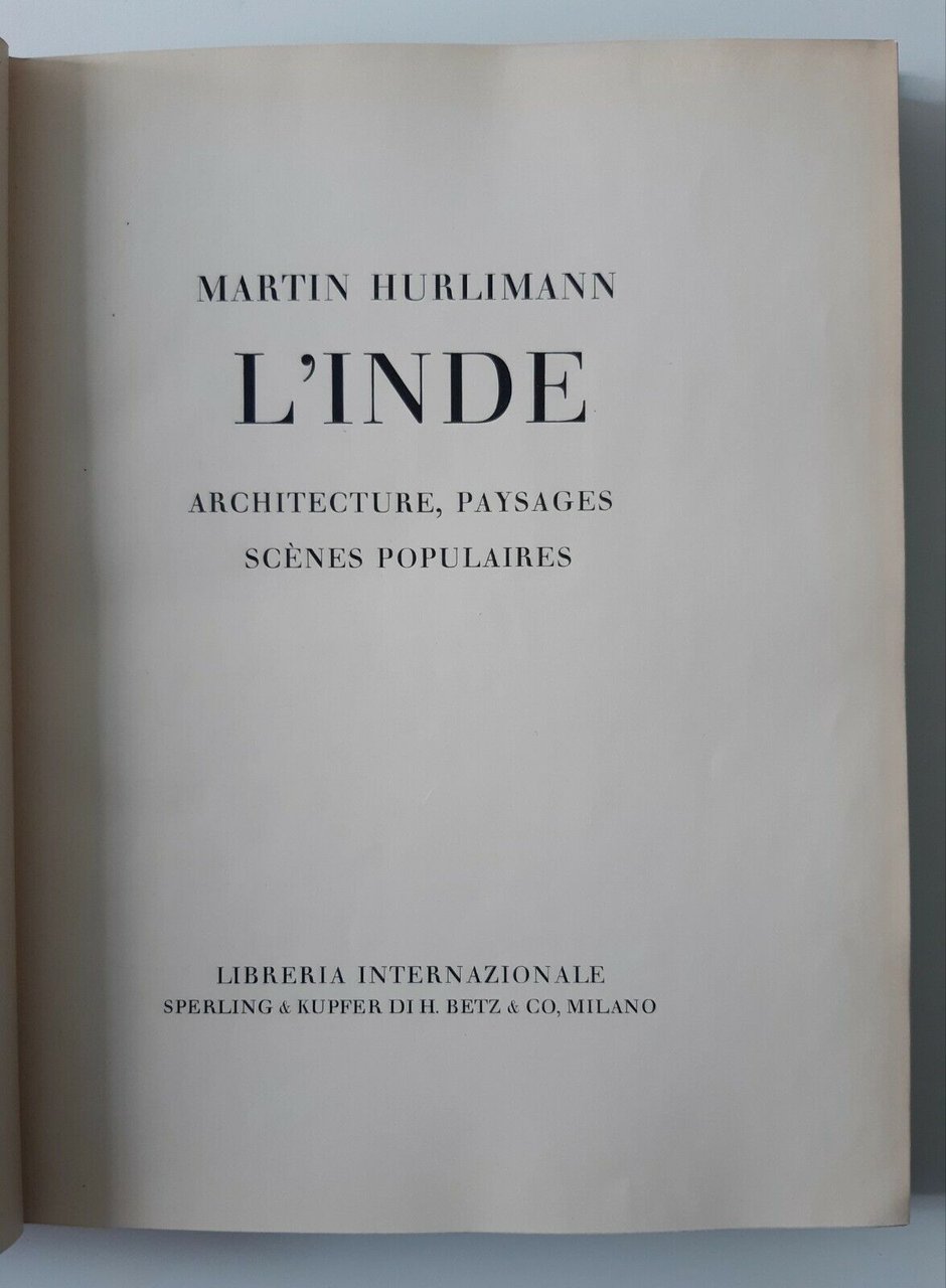 MARTIN HURLIMANN L'INDE ARCHITECTURE PAYSAGES SCENES POPULAIRES SPERLING & KUPFER 1928In 4°, pag. 304 , legatura in piena tela con titolo e fregi in oro al dorso e ai piatti, illustrazioni in b/n. Lievissimi segni alla copertina, altrimenti in ottime condizioni.Ulteriori dettagli e immagini a richiesta.