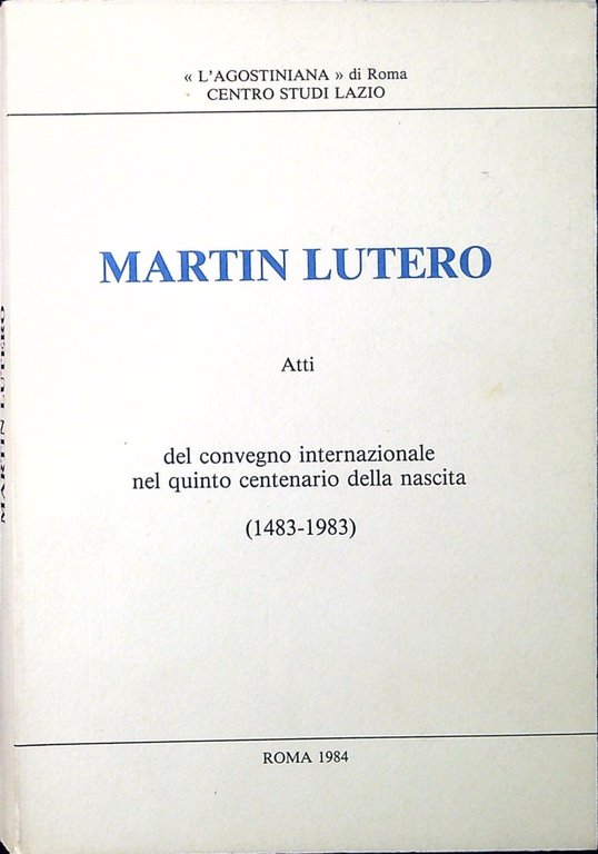Martin Lutero : atti del Convegno internazionale nel quinto centenario della nascita. , Agostiniana : Centro studi Lazio 1984, 204 p. : ill. ; 21 cm. (72150)
