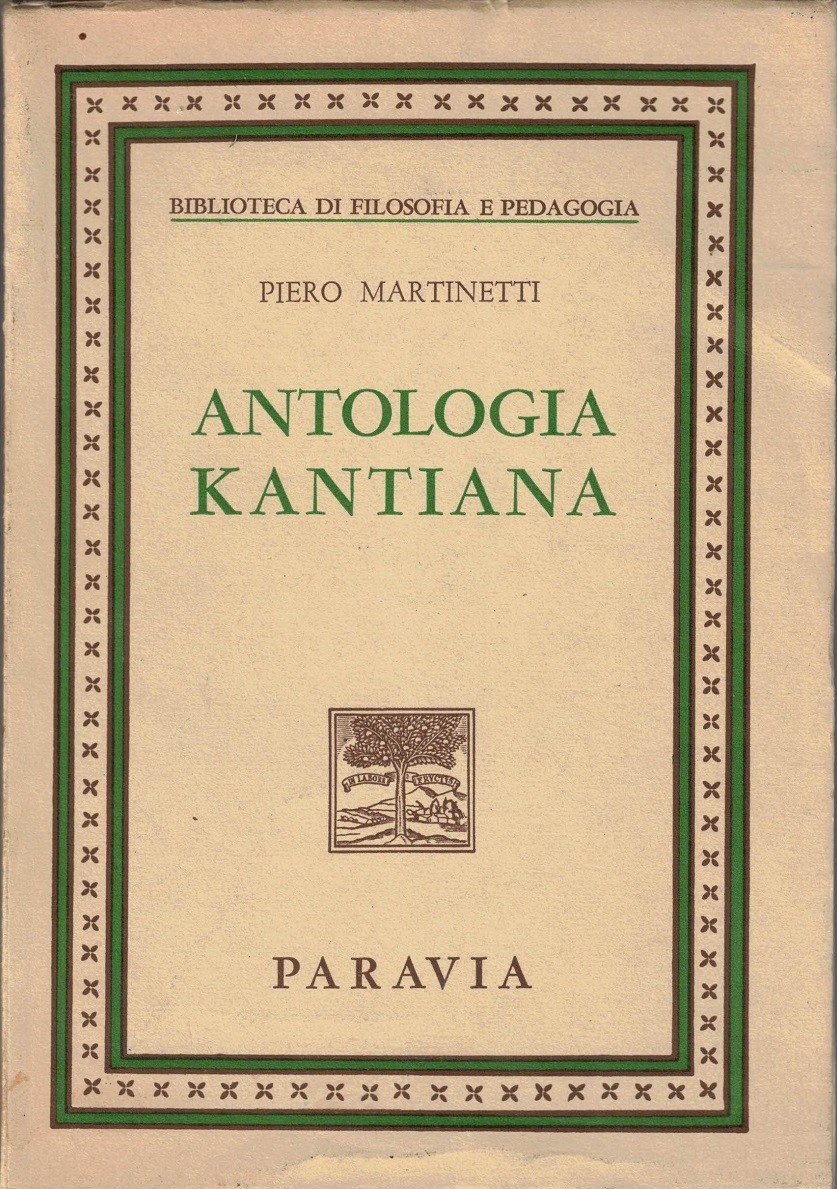 Piero Martinetti, Antologia kantiana, G. B. Paravia e C., Torino 1968, terza ed., undicesima rist., pp. X, 238, cm 21, br. ed. Collana Biblioteca di Filosofia e Pedagogia. Leggere tracce d’uso, qualche pagina con lievi sottolineature a lapis, minima brunitura della carta, per il resto esemplare ben conservato, con brossura solida e interno ben tenuto.