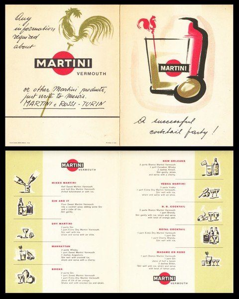 Martini Vermouth. A successful cocktail party. Depliant pubblicitario.