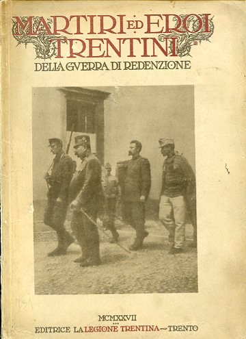 In-8°, pp. 366, (2), brossura editoriale illustrata con fotografia di Cesare Battisti condotto al patibolo. Numerosissime tavv. fotografiche f.t. Ottimo stato. Nella prima parte si discorre di Damiano Chiesa, Cesare Battisti e Fabio Filzi; nella seconda è presente un elenco alfabetico dei caduti trentini nella Grande Guerra.