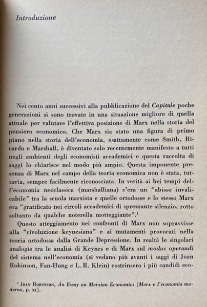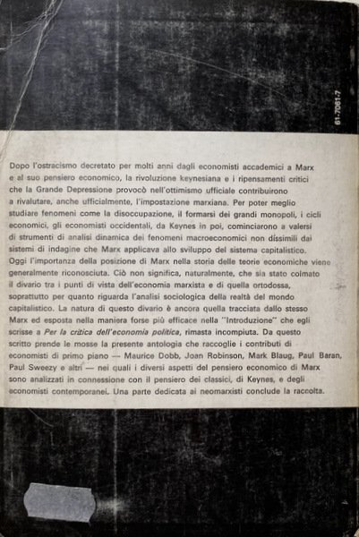 Soggetti: Economia politica marxista, Marxismo, John Maynard Keynes, Pensiero economico, Filosofia, Studi economici, Comunismo, Capitalismo, Capitale, Opere generali, Studi storici, Sistema economico, Mercato, Accumulazione, Plusvalore, Concetti, Principi, Reddito, Ricchezza, Povertà, Profitto, Denaro, Merce, Salario, Lavoro, Commercio, Lavoratori, Diritti, occupazione, Saggio, Società, Scienze sociali, Classici, Produzione, Produttività, Rendita, Teorie economiche, Novecento, Marxisti, Moneta, Circolazione, Inflazione, Competitività, Industria, Fabbriche, Operai, Manodopera, Proprietà, Domanda, Offerta, Disoccupazione, Cottimo, Borghesia, Proletariato, Equilibrio, Consumo, Interesse, Sociologia, Libri Vintage Fuori catalogo, Manuali, Critica, Scambio, Distribuzione, Ristagno, Progresso, Tecnica, Modernità, Industrializzazione, Polemiche, Dibattiti, Risorse, Socialismo, Letture, Bibliografia, Riferimento, Letteratura economica, Rivoluzione, Grande Depressione, America, Welfare, Stato, Ortodossia, Analisi, Prezzi, Engels, Germania, Europa, Russia, Stati Uniti, Guerra, Storia, Servitù, Schiavitù, Sfruttamento, Diritto, Sindacati, Monopolio, Oligopolio, Macchine, Prodotti, Meccanizzazione, Concorrenza, Cicli, Crisi, Imperialismo, Agricoltura, Militarismo, Classe operaia, Lotta di classe, Classi sociali, Dottrina marxista, Schumpeter, Domar, Unione Sovietica, Antiduhring, Pianificazione, Marxist political economy, Marxism, Economic thinking, Philosophy, Economic studies, Communism, Capitalism, Capital, General works, Historical studies, Economic system, Market, Accumulation, Surplus value, Concepts, Principles, Income, Wealth, Poverty, Profit, Money, Commodities, Wages, Labor, Commerce, Workers, Rights, Employment, Essay, Society, Social sciences, Classics, Production, Productivity, Income, Economic theories, Twentieth century, Marxists, Money, Circulation, Inflation, Competitiveness, Industry, Factories, Workers, Labor, Property, Demand, Supply, Unemployment, Cooking, Bourgeoisie, Proletariat, Balance, Consumption, Interest, Sociology, Out of print books, Manuals, Criticism, Exchange, Distribution, Stagnation, Progress, Technique, Modernity, Industrialization, Controversies, Debates, Resources , Socialism, Readings, Bibliography, Reference, Economic literature, Revolution, Great Depression, State, Orthodoxy, Analysis, Prices, Germany, Europe, United States, War, History, Servitude, Slavery, Exploitation, Law, Unions, Monopoly, Oligopoly, Machines, Products, Mechanization, Competition, Cycles, Crisis, Imperialism, Agriculture, Militarism, Working class, Class struggle, Social classes, Doctrine, Soviet Union, Planning