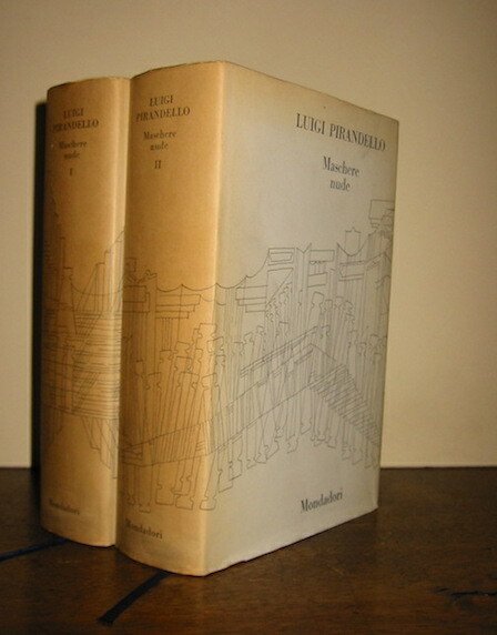 8vo (cm. 21), 2 Voll. 1245 pp., 2 cc.nn.; 1380 pp., 3 cc.nn. Ritratto di Pirandello protetto da velina in antiporta del primo volume. Legature editoriali in piena tela con sovracoperta fig. Dorsi leggermente ingialliti, altrimenti esemplare in ottimo stato di conservazione. Volumi nn. 4 e 5 dei sei delle ‘Opere di Luigi Pirandello’.