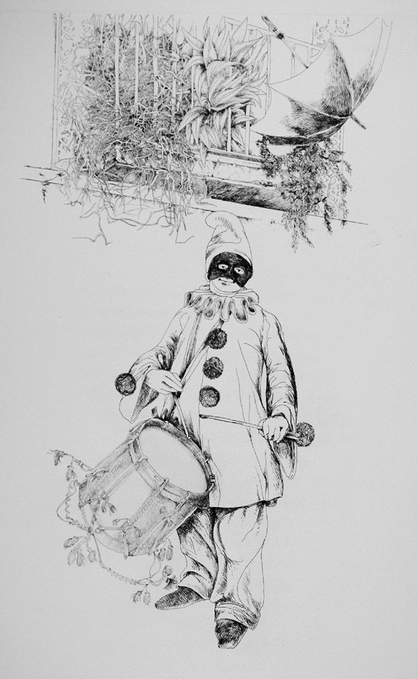 In folio massimo; pp. non num. 4 a fogli sciolti, con lo scritto di Paolo Levi, seguono serie di 5 acqueforti originali a colori numerate e firmate a matita: Arlecchino, Colombina, Pulcinella, Balanzone, Capitan Fracassa. Bella ediz. limitata a 120 esempl. numerati oltre a XXXV num. romana e cinque prove d'Artista.; cartella m.tela edit. con fac-simile di firma al piatto. Opera f.commercio edita in esclusiva per la Benetton S.p.a.<BR>(vedi riproduz.)
