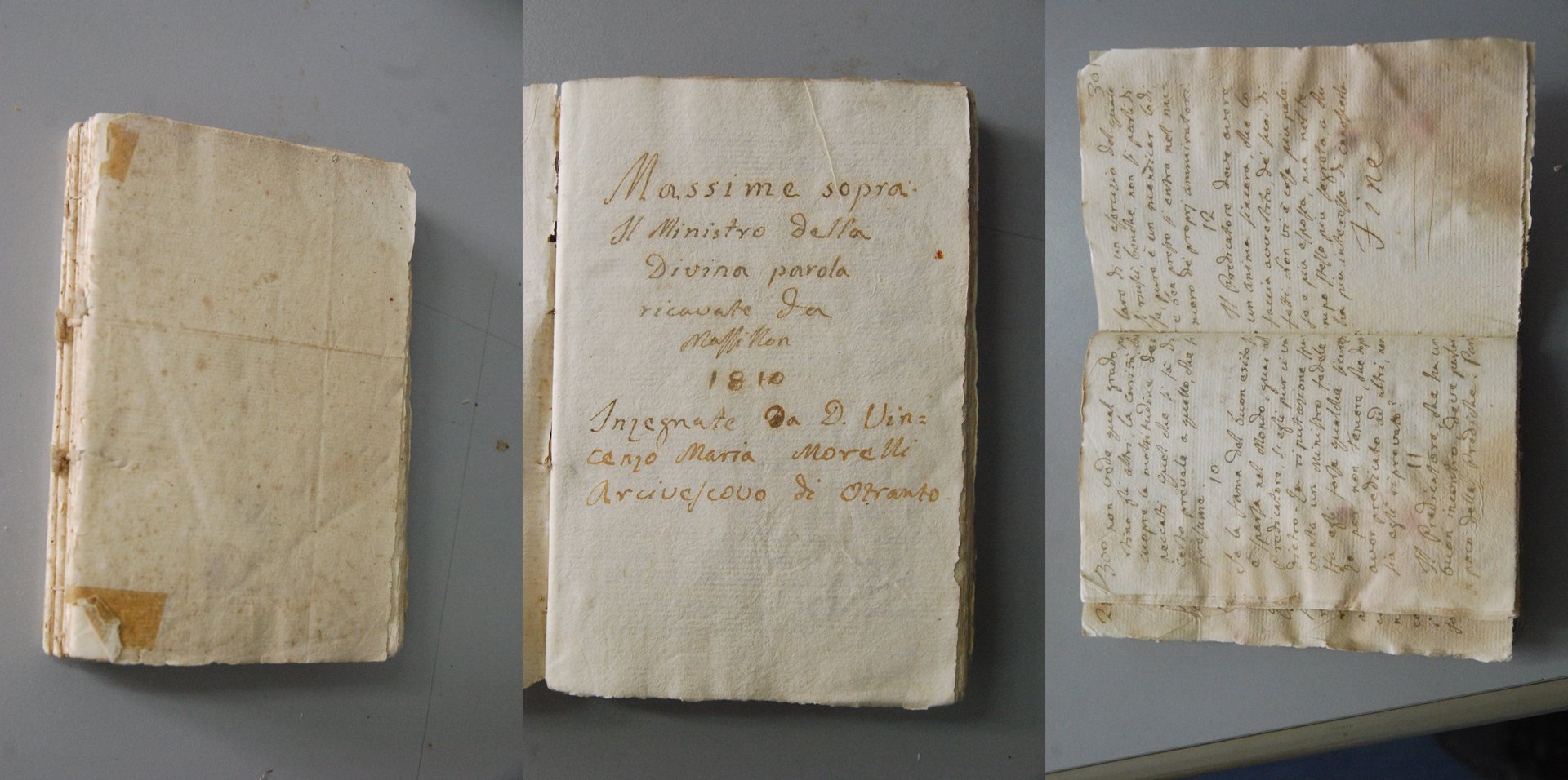 manoscritto di don vincenzo maria morelli arcivescovo di otranto massime sopra il ministro della divina parola ricavate da massinon insegnate da. 1810 .