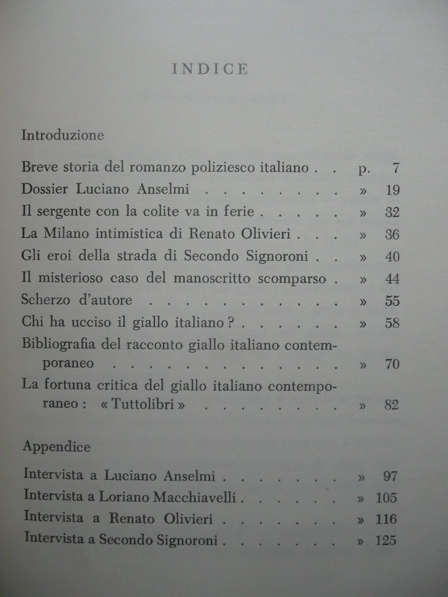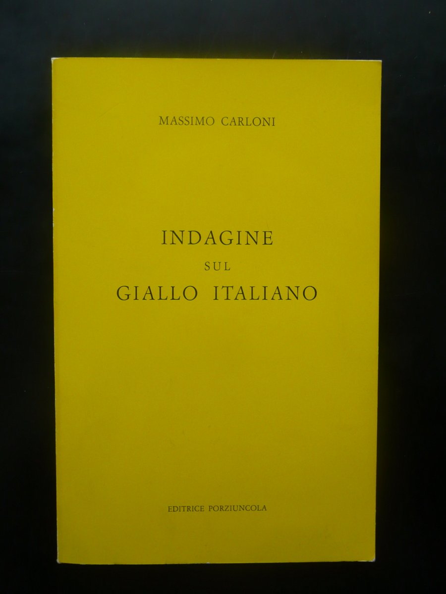 Massimo Carloni, Indagine sul Giallo Italiano Editrice Porziuncola, Assisi 1984, cm 19,5x12,5, pp. 132; brossura ed. Condizioni di conservazione Esemplare in buone condizioni con leggere tracce d'uso. Interni ottimi. SETT91.L8442 N