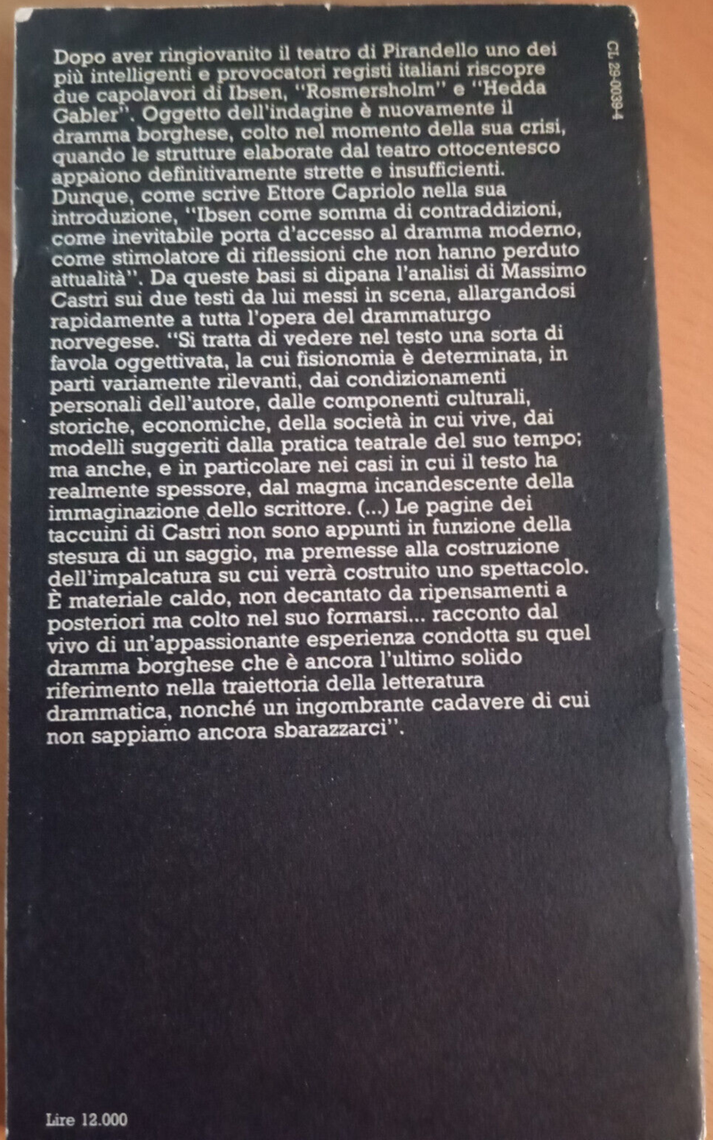 Massimo Castri, Ibsen postborghese, E. Capriolo, Ubulibri, 1984