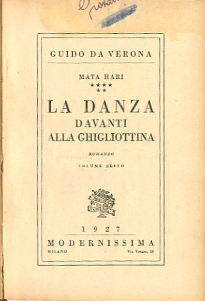 223 p. ; 18 x 12 cm. Guido da Verona (pseudonimo di Guido Verona, con l'inserire un "da" al suo cognome anagrafico ha voluto riprendere la versione medievale e rinascimentale dei cognomi ebraici), dietro lo stile leggero dell’arguto scrittore alla moda che così bene sapeva interpretare le fantasie abbastanza snob e vagamente erotiche della borghesia del suo tempo, nascondeva e teneva alto il senso del proprio diritto umano alla libertà di pensiero. Era inoltre presente nella sua opera un’ambigua contaminazione di erotismo estetizzante, di sentimentalismo e una particolare predilezione per l’esotico che lo portò ad ambientare le sue storie in luoghi magici e lontani (Marocco, Iran, ecc.). Legatura non originale in cartone rigido telato di colore grigio. Segni del tempo alla carta interna (ingiallimento). Codice libreria 5003.