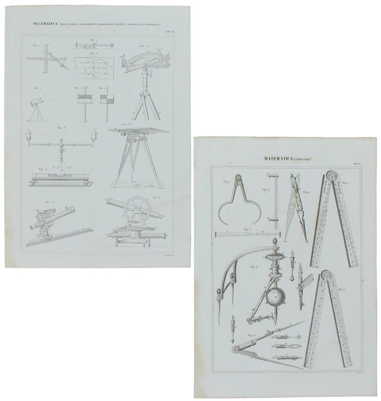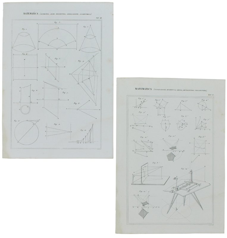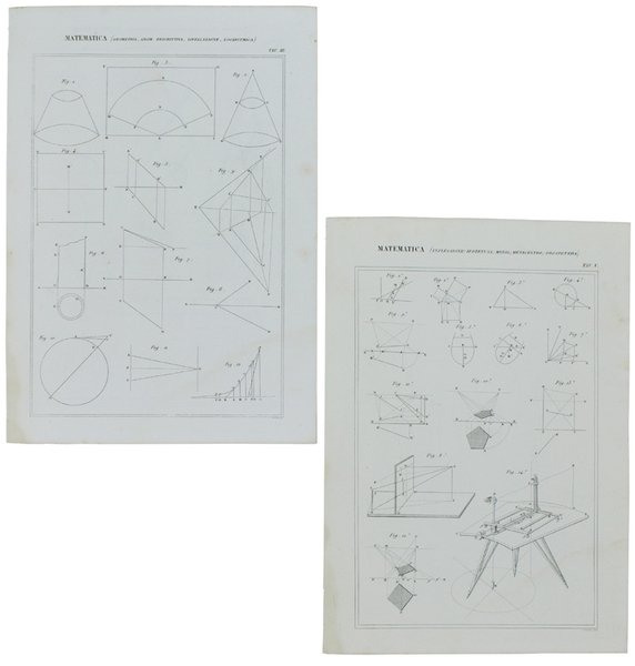 MATEMATICA. Cinque tavole con incisioni in rame tratte dall'ATLANTE della NUOVA ENCICLOPEDIA POPOLARE ITALIANA.