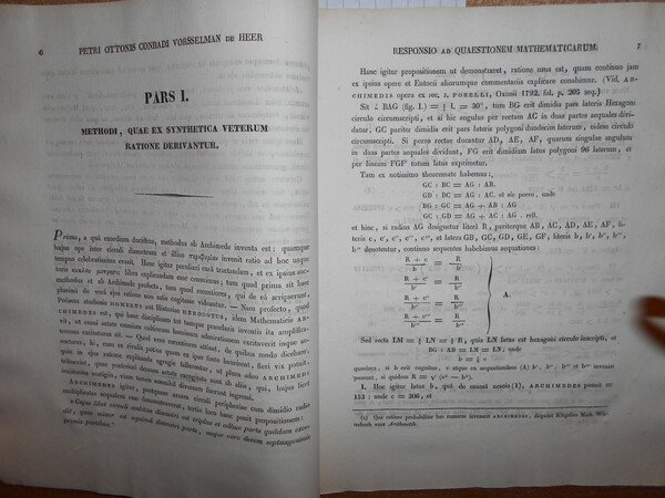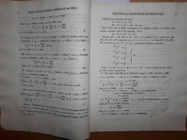 (Matematica) PETRI OTTO COENRAAD VORSSELMAN de HEER (1809 - 1841). RESPONSIO ad Quaestionem a Nobilissimo Disciplinarum Mathematicarum et Physicarum ordine in Academia Groningana. Groningae, ex Academia Groningana, 1832. In-8° grande, br. muta. 82 pp. con due tavole ripiegate fuori testo. Raro opuscolo in ottimo stato di conservazione. Poggendorff, I, 1234. Bierens de Haan, 5124. Uff. stanz. antic. pacco opusc.