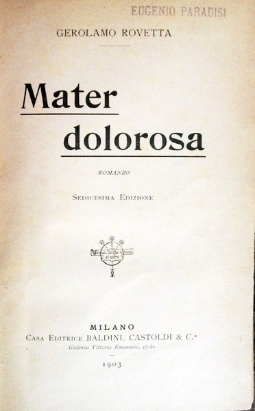Mater dolorosa. Romanzo. Sedicesima edizione.