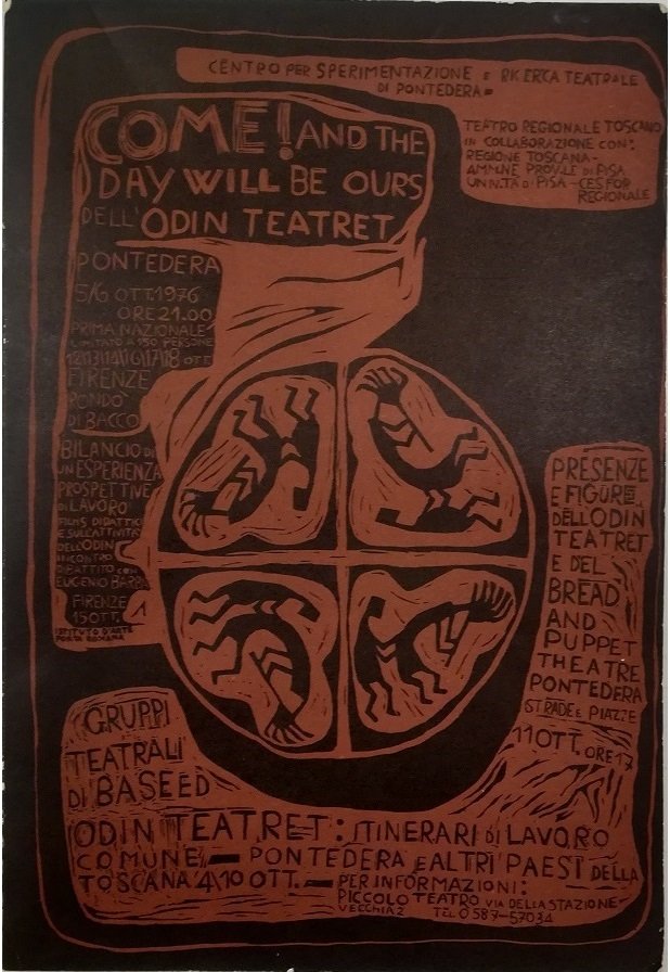 contiene: «Appunti per un viaggio» di Roberto Bacci; Programma del seminario: «Gruppi teatrali di base toscani ed Odin Teatret: itinerari di lavoro comune»; Testi dello spettacolo: «Come! and the day will be ours» dell'Odin Teatret; «Roots and Leaves» di Eugenio Barba; «Lettere dal Sud Italia» di Eugenio Barba; «Indice dei sentieri di mare» (1974/1975) di Iben Nagel Rasmussen con Eugenio Barba, Tony D'Urso, Ferdinando Taviani, montaggio di Ferdinando Taviani; Testi dei films didattici realizzati dall'Odin Teatret Film Training all'Odin Teatret Film n. 1: Training vocale testo di Eugenio Barba, Training all'Odin Teatret Film n. 2: Training fisico testo di Eugenio Barba; Testo da: «Vestita di bianco» dell'Odin Teatret Film Regia di Torgeir Wethal - in 4°, bross. edit. ill., mancanza al piede del dorso - ciclostilato a cura del Piccolo Teatro di Pontedera, data di stampa presunta - una illustrazione in b.n. nel testo