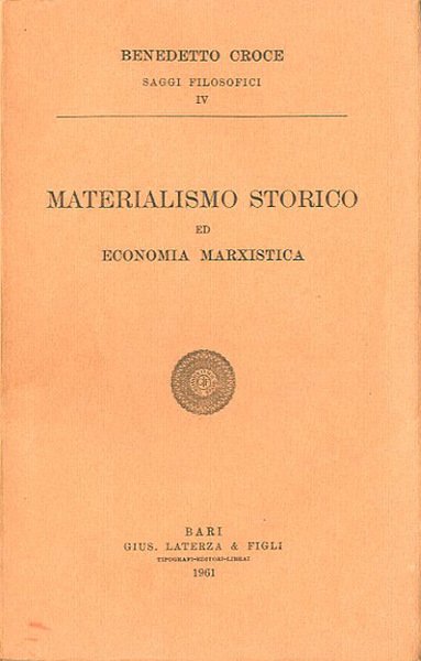10. ed. XV, 328 p. ; 21 x 14 cm. Opere di Benedetto Croce. Saggi filosofici, 4. Benedetto Croce, completata la maggior parte del suo percorso intellettuale, ripercorre con distacco il dibattito sul marxismo a cui aveva partecipato, proponendosi di storicizzarlo e dargli la rilevanza che aveva avuto negli anni, quelli dell'ultimo decennio dell'800, in cui si era sviluppato. Brossura editoriale, coperta in cartoncino flessibile colorato. Codice libreria 5016.
