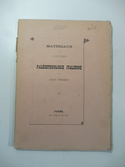 In 8, cm 17,5 x 24, pp. 96. Brossura editoriale con lievi danni. Edizione in francese pubblicata dopo la prima edizione del 1871 pubblicata in occasione del Congresso di archeologia preistorica di Bologna. Si tratta della prima bibliografia dedicata all'archeologia preistorica in Italia. La storia dell'archeologia preistorica e della paletnologia fu un interesse che caratterizzo' tutta l'attivita' scientifica e didattica del Pigorini. In questo lavoro l'autore ordina le opere in chiave cronologica corredando le schede di molte notizie relative ai contenuti dei libri citati.