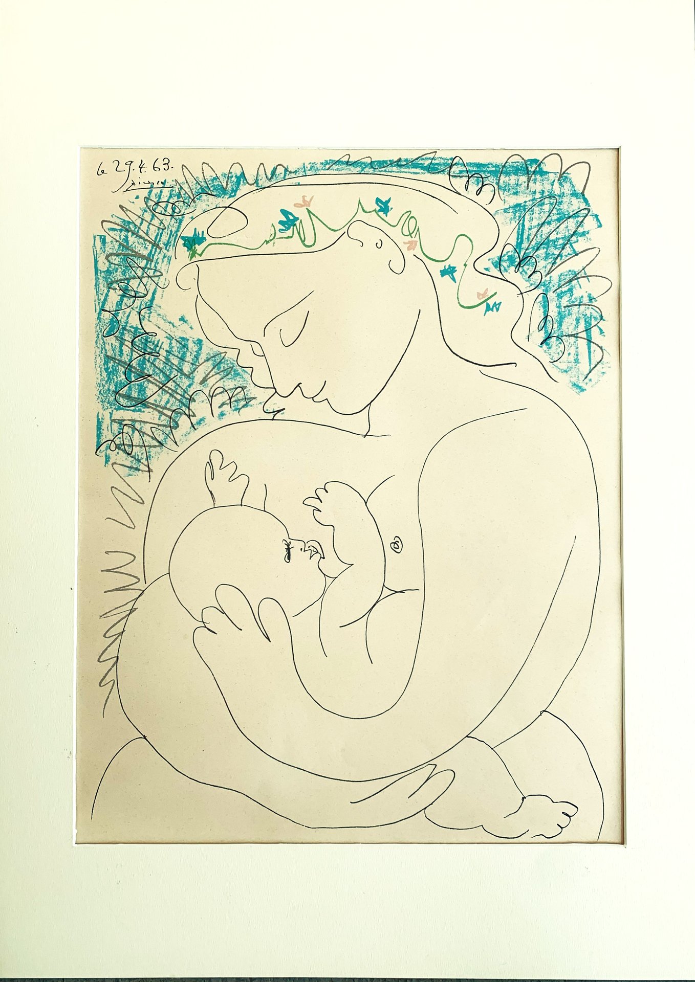Maternité litografia del 1963 firmata in lastra Picasso