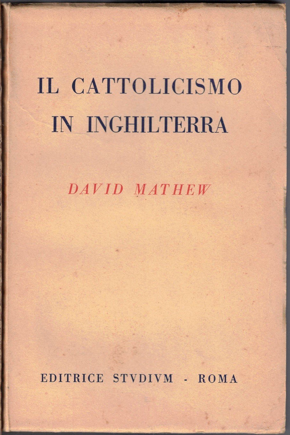 David Mathew, Il cattolicismo in Inghilterra, Editrice Studium, Roma 1951, pp. 366, cm 23, br. ed. Collana Cultura, 9. Titolo originale: Catholicism in England. Traduzione di Pietro Bottini. Minime tracce d’uso, lievi fioriture, leggera brunitura della carta, per il resto ottimo.