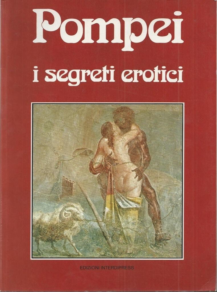 Pompei. I segreti erotici, testi di Lucia Matino, Edizioni Interdipress, Napoli 1983, pp. 39, ill. col., cm 27, br. ed. All’interno, conservato articolo di Valerio Massimo Manfredi dal titolo Ho scritto sesso sulla lava (Panorama, 26 agosto 1994, pp. 96-97). Lievissime tracce d’uso, per il resto ben conservato.