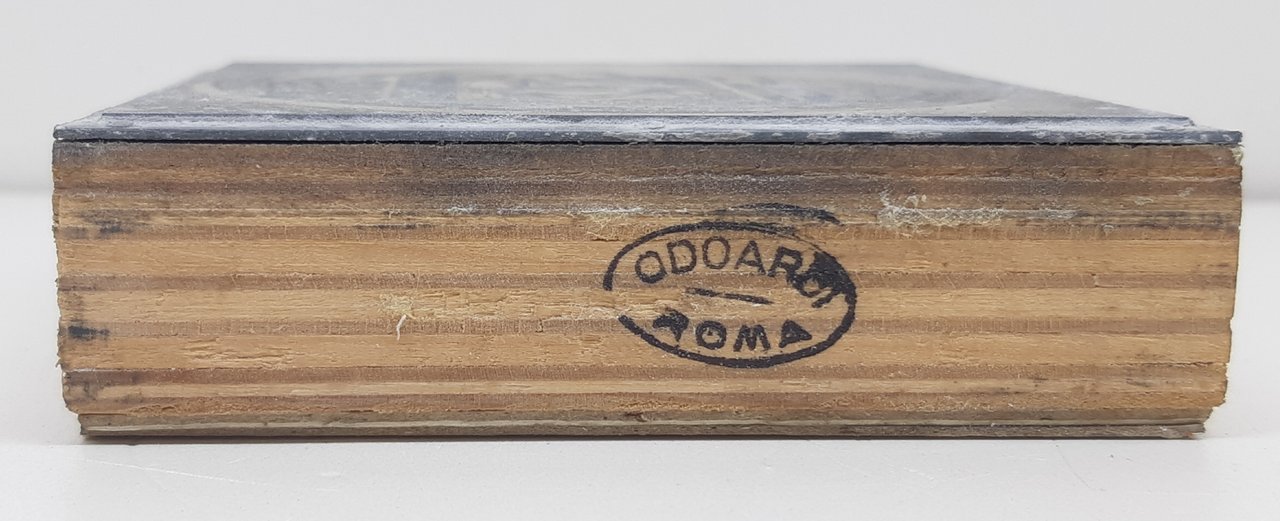 dimensioni supporto 9 * 9 lastra 8,5 * 8,5 spessore 2,5 timbro Odoardi Roma supporto in legno