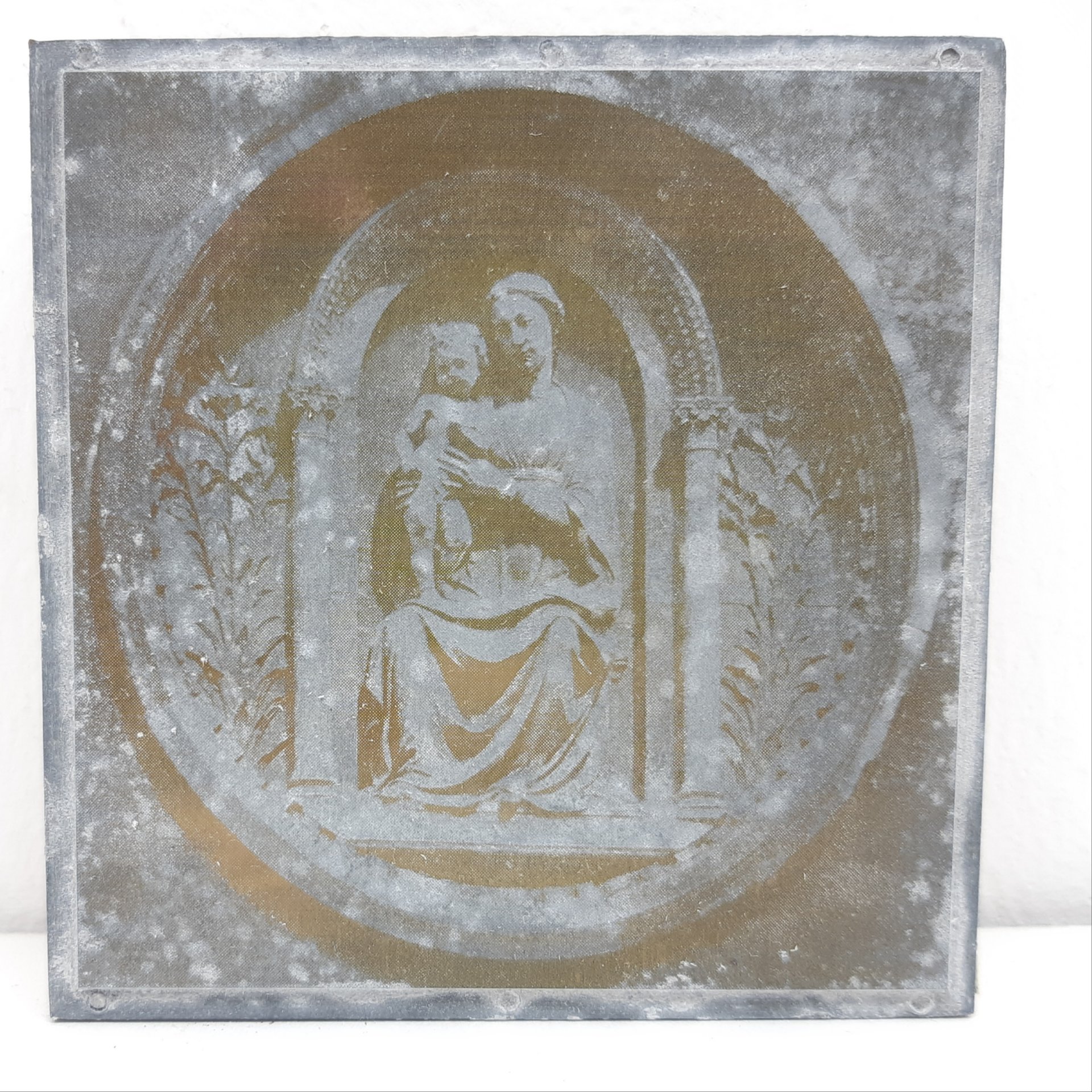 Matrice per stampa Luca della Robbia Madonna in tondo con Gesù bambino su zinco