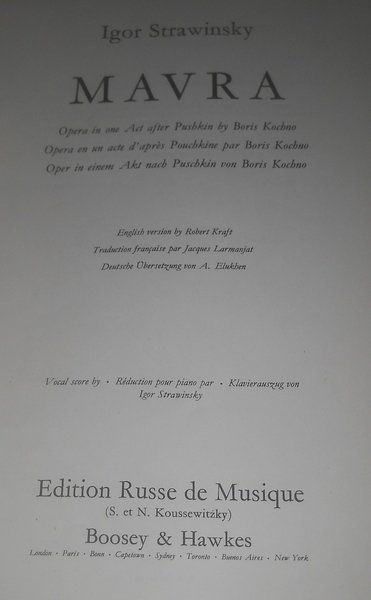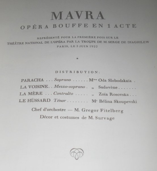 Mavra. Opera Bouffe en un acte d'apres A. Pouchkine