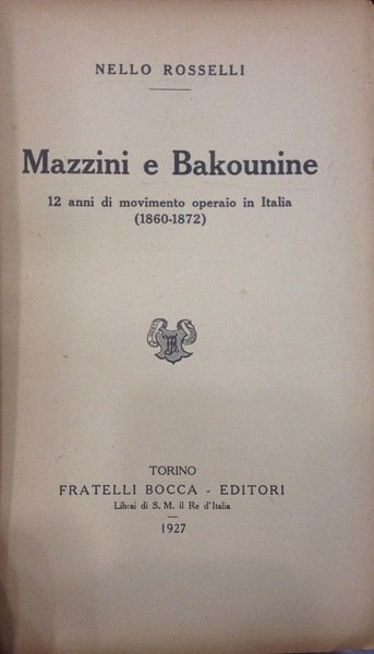 MAZZINI E BAKOUNINE. 12 anni di movimento operaio in Italia (1860-1872)