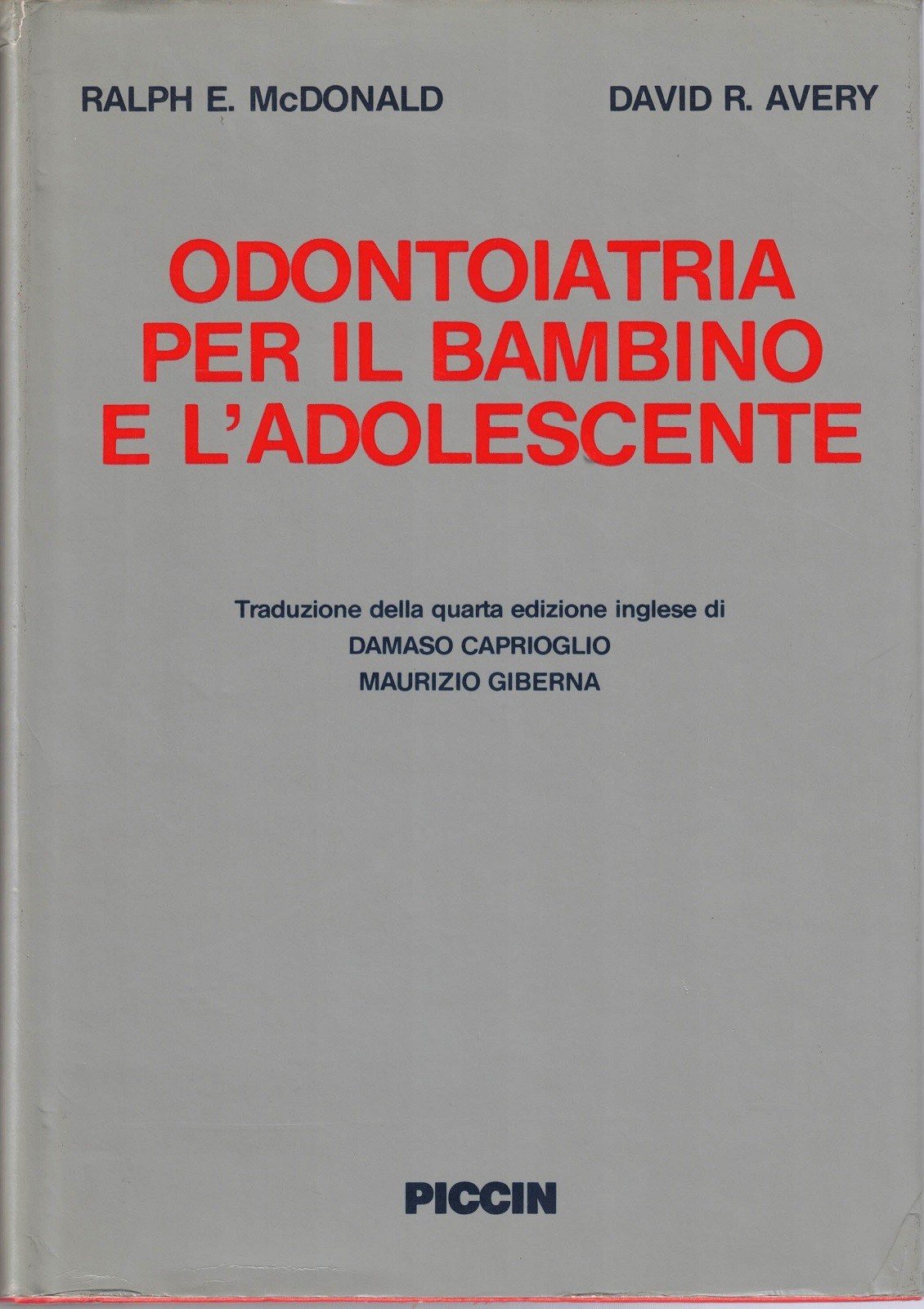 RalphE. McDonald, David R. Avery, Odontoiatria per il bambino e l’adolescente, traduzione della quarta ed. inglese di Damaso Caprioglio e Maurizio Giberna, Piccin, Padova 1988, pp. XII, 857, ill. b.n., cm 25, legatura in similpelle con titoli al dorso e sovraccoperta. Titolo originale: Dentistry for the child and the adolescent. Leggere tracce d’uso, uno strappetto senza mancanze alla sovraccoperta, lieve brunitura della carta, per il resto ben conservato.