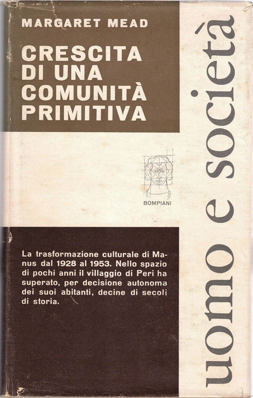 Margaret Mead, Crescita di una comunità primitiva. Trasformazioni culturali a Manus, 1928-1953, Valentino Bompiani, Milano 1962, pp. 509, ill. b.n., 8 c. di tavv. f.t. ill. b.n., cm 22, legatura in tutta tela ed. con titoli al dorso e al piatto e sovraccoperta. Collana Uomo e società. Titolo originale: New lives for old. Traduzione di Grazia Griffini. Leggere tracce d’uso e uno strappo senza mancanze alla sovraccoperta, tenue brunitura della carta, per il resto ottimo esemplare, con legatura solida e interno pulito e ben tenuto.